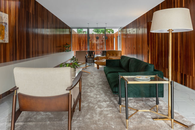 Casa Espanha, projeto de 240 m² idealizado com conceito aberto e amplo, volumetria ortogonal, se utilizando de volumes que se apoiam gerando um convívio social na sobra do volume superior, se utilizando de conceitos da arquitetura modernista,